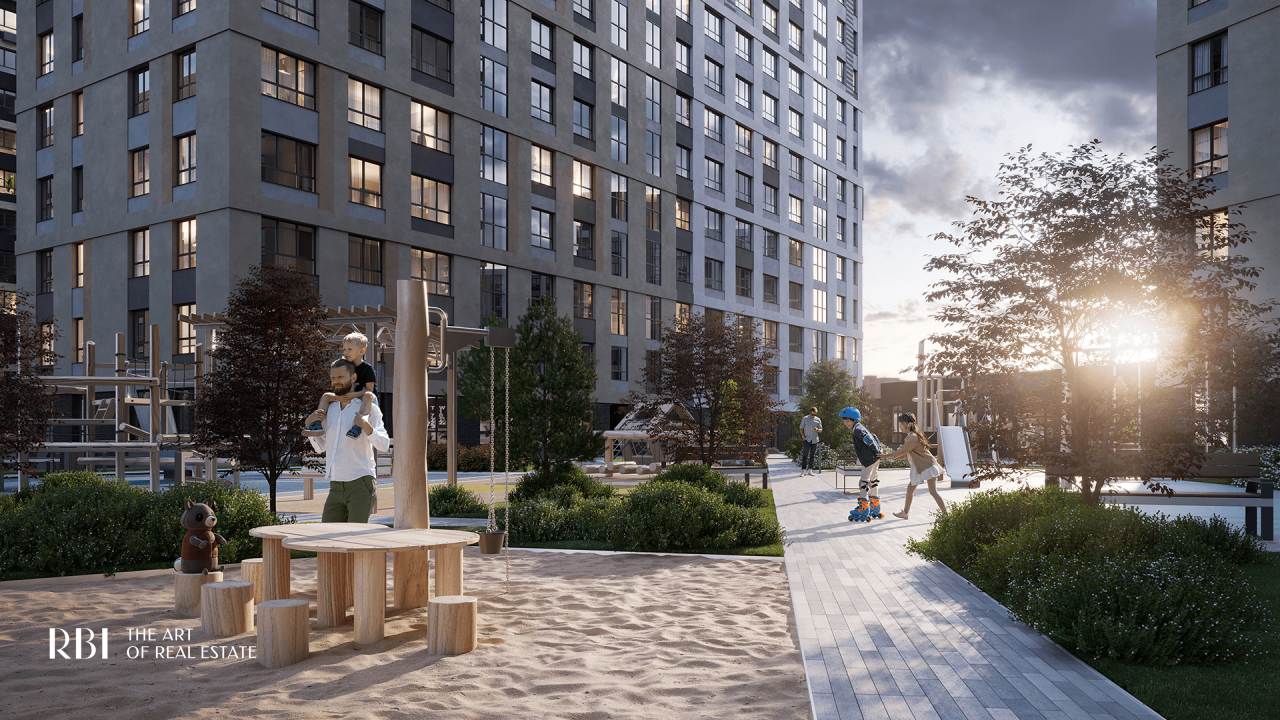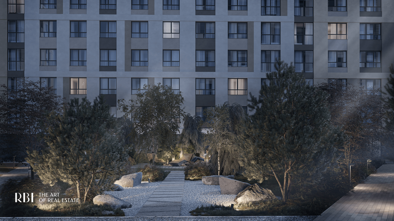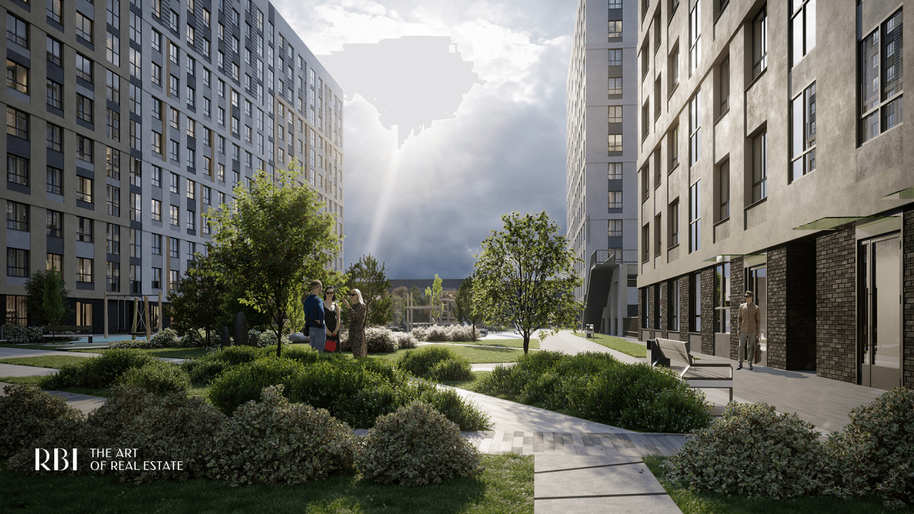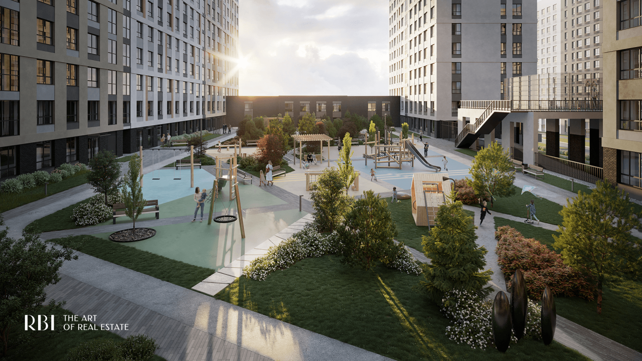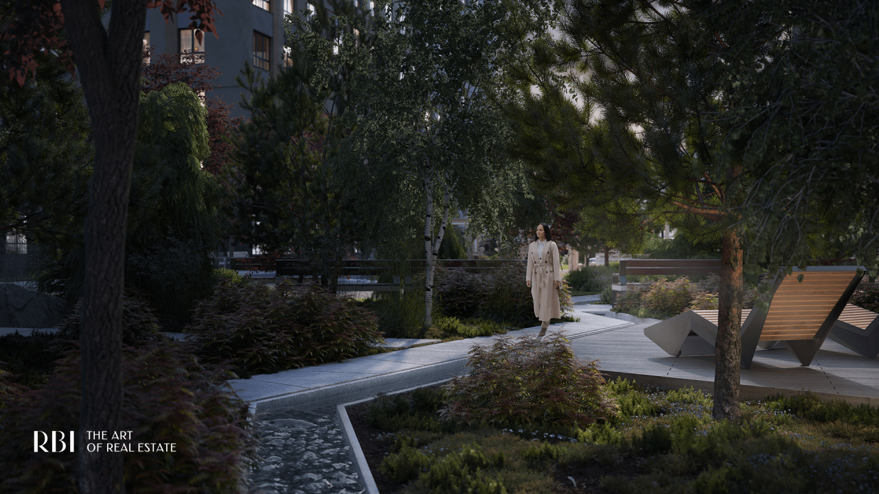 Это не просто двор — это живописное полотно под открытым небом. Настоящий ручей, пейзажный парк и мягкие линии ландшафта — здесь природа становится частью повседневности. Приватность охраняемой территории обеспечена её расположением на уровне 2-го этажа на стилобате. Попасть сюда можно только по ключу — или по приглашению, как в закрытую галерею для ценителей тишины и красоты. Во дворе вы словно вы поднимаетесь над городской суетой к покою и свету.